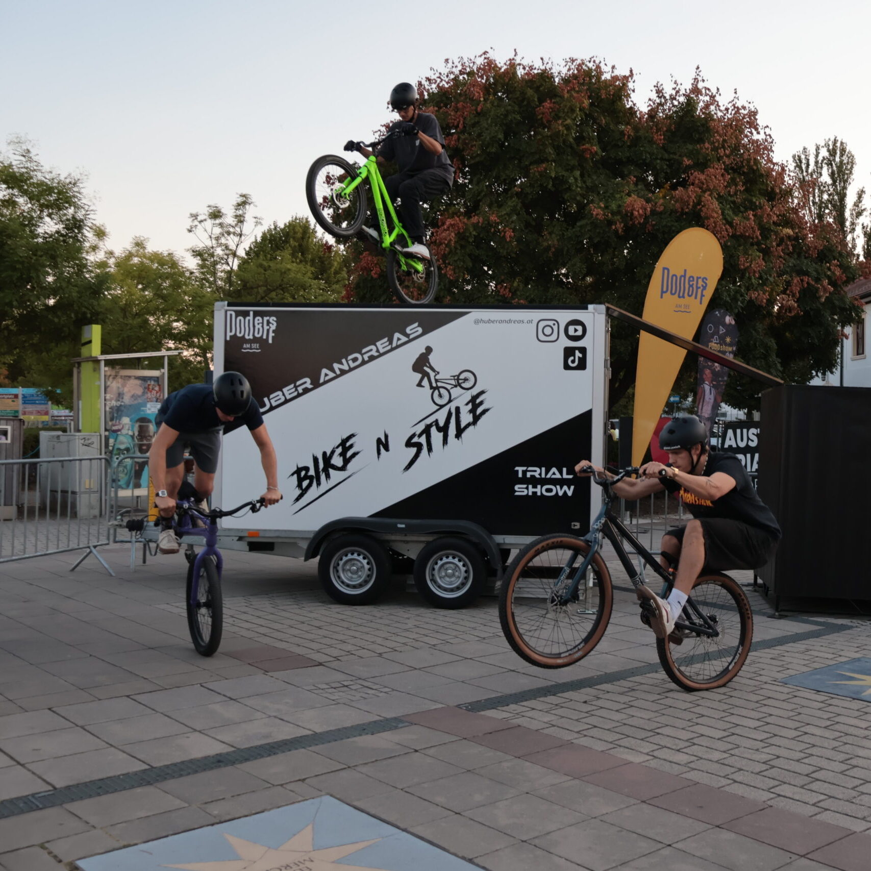 Unser Setup kann exakt auf die individuellen Bedürfnisse und zeitlichen Vorgaben abgestimmt werden. Egal, ob für Firmenevents, Sportveranstaltungen, Geburtstagsfeiern oder sonstige Veranstaltungen. Von kleinen Nebenacts bis hin zur Hauptattraktion ist alles dabei. Außerdem gibt es Bike-Technik-Workshops für Jung und Alt. Wir finden auf jeden Fall das Richtige für euer Event.